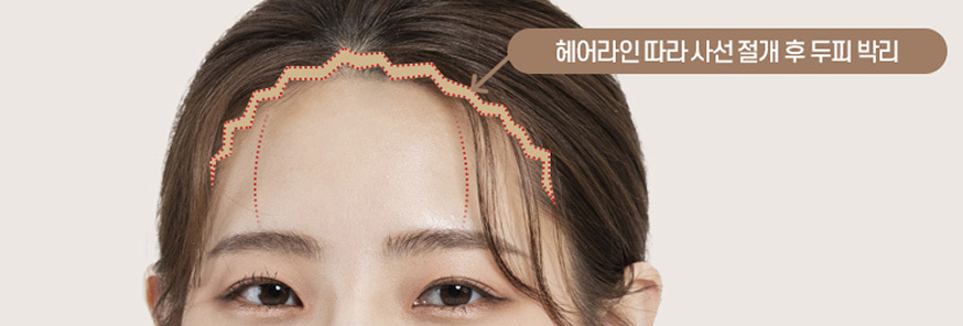 소다 이마축소 수술은 헤어라인 부위를 물결 모양으로 섬세하게 절개한 후