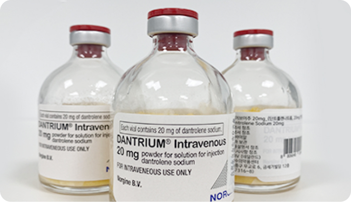 단트롤렌은 전신마취에 따라 체온이 급속도로 상승하는 ’악성고열증’ 발생 시 사용하는 치료제로 0.1%의 응급 상황에 대비하기 위해 구비하고 있습니다.