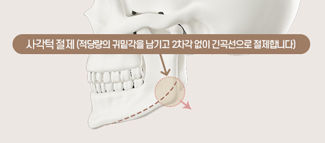 크고 각진 턱을 절제하여 보다 매끄러운 얼굴라인을 완성합니다.